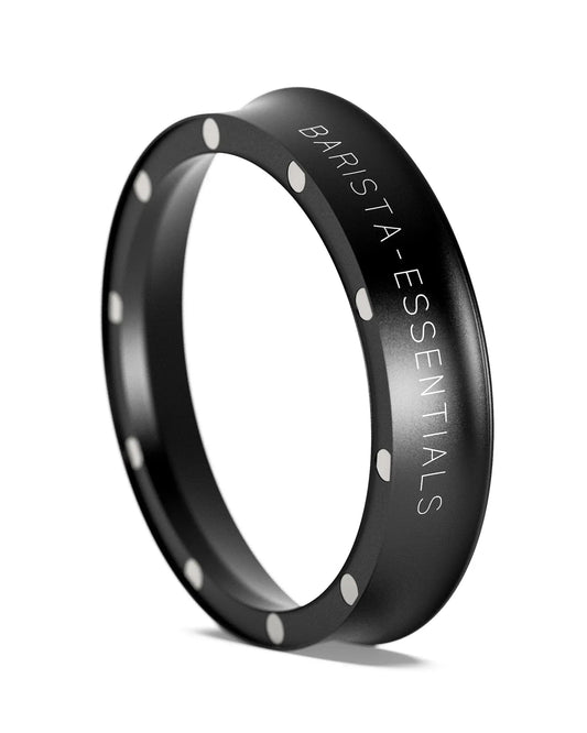 Tijdens het malen kan er een hoop koffie buiten je filterbakje belanden. Dat is zonde, en daarom is een doseerring (of dosing funnel) zo handig.