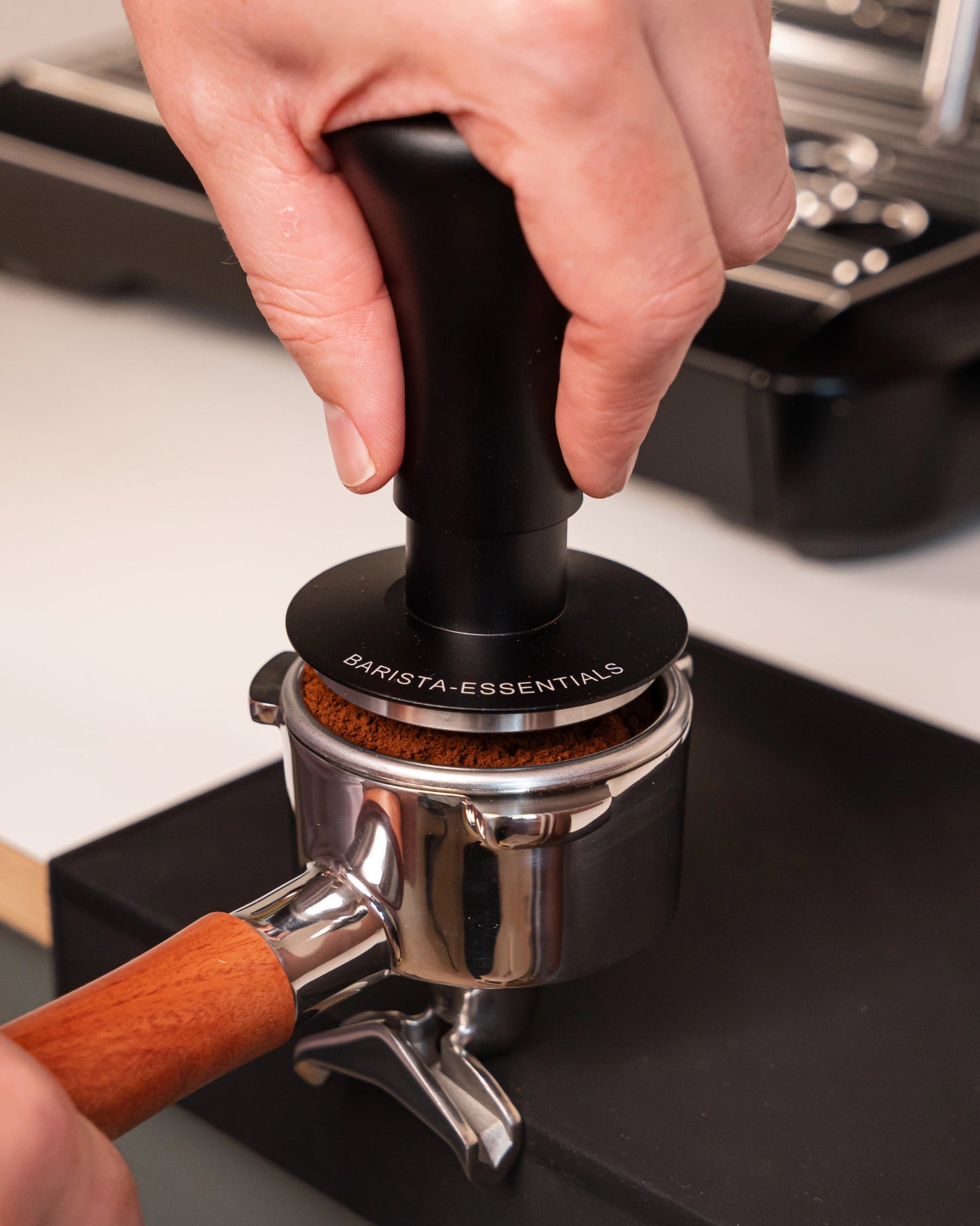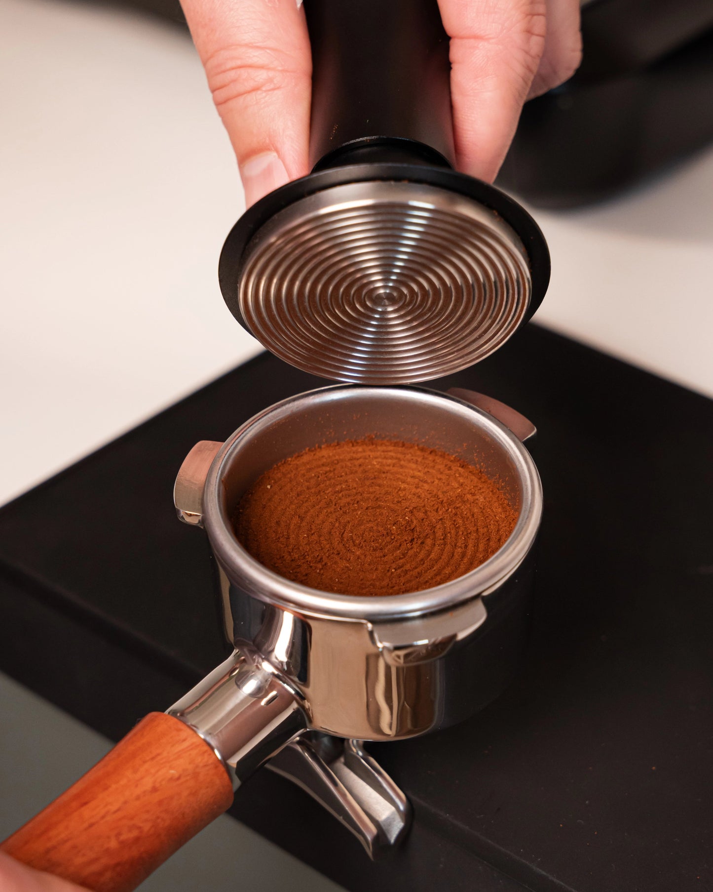 - Altijd recht tampen omdat je 'm op de randen van je portafilter zet