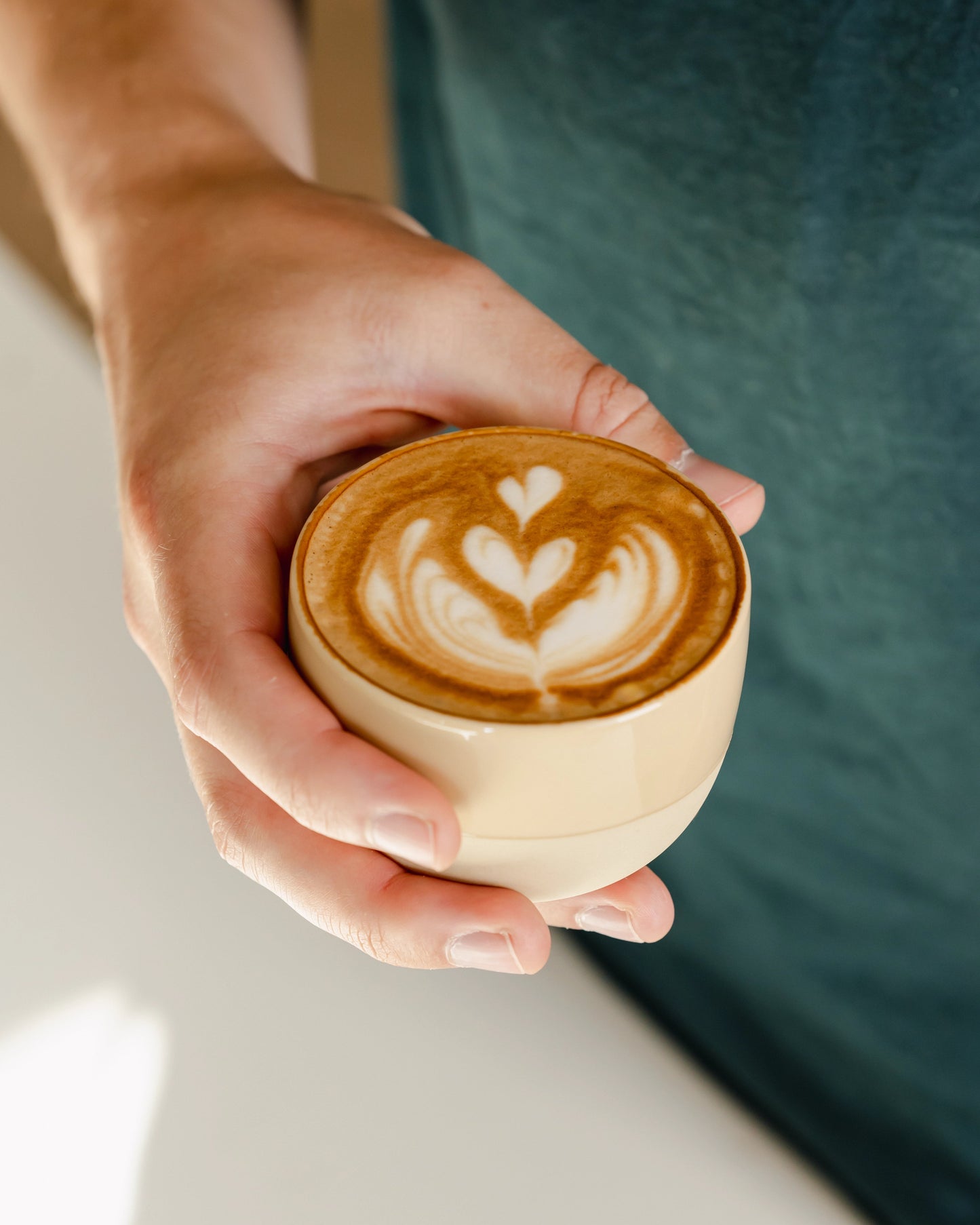 Drink hem uit ons Sand Yellow kopje – de gele tinten versterken de warme smaken in deze koffie.