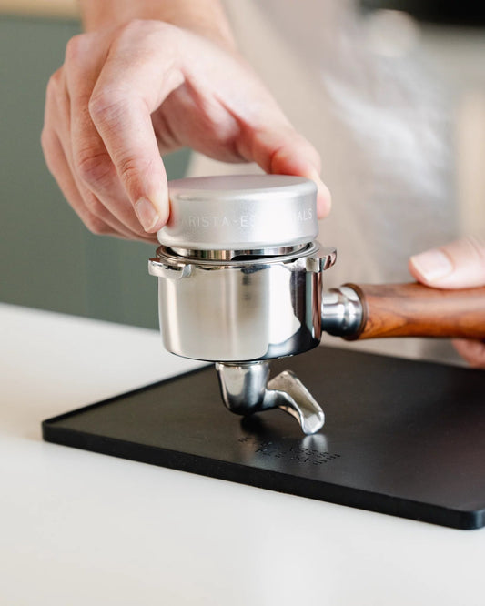 Na het verdelen is het belangrijk dat je je koffie goed aanstampt. Hierbij maken de juiste tools ook het verschil. Bekijk hier onze tampers of 2-in-1 tamper en koffieverdelers.
