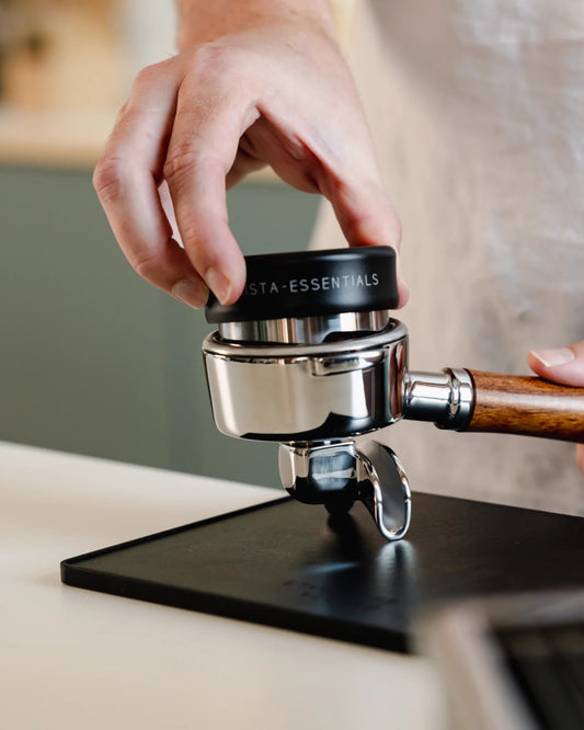 Na het verdelen is het belangrijk dat je je koffie goed aanstampt. Hierbij maken de juiste tools ook het verschil. Bekijk hier onze tampers of 2-in-1 tamper en koffieverdelers.