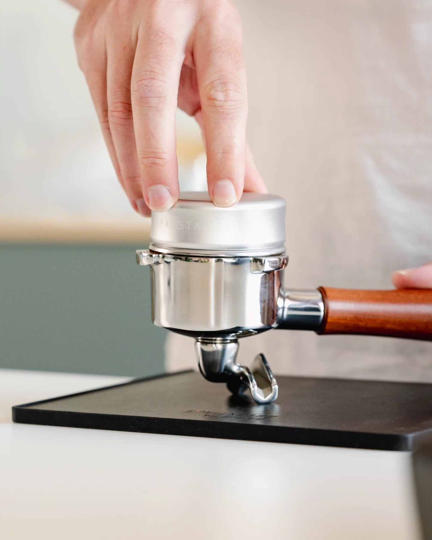 Na het verdelen is het belangrijk dat je je koffie goed aanstampt. Hierbij maken de juiste tools ook het verschil. Bekijk hier onze tampers of 2-in-1 tamper en koffieverdelers.