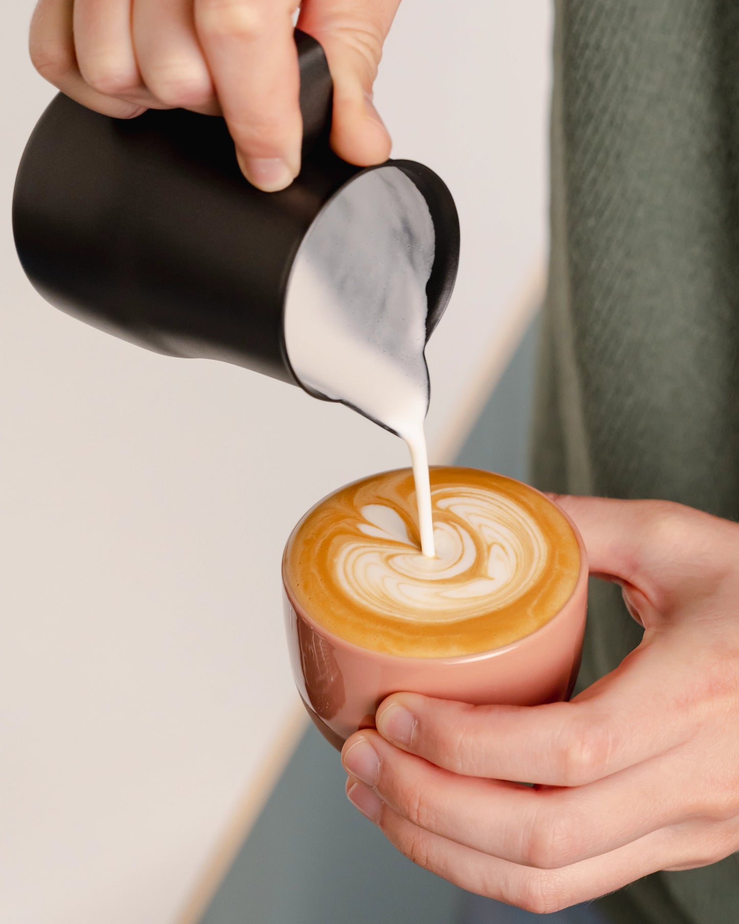 Toen ik net begon met latte art maken, gebruikte ik (Jasper) altijd maar één kannetje. Hierdoor mikte ik het dikkere melk, dat na het schuimen bovenop lag, ook zo mijn kopje in.
