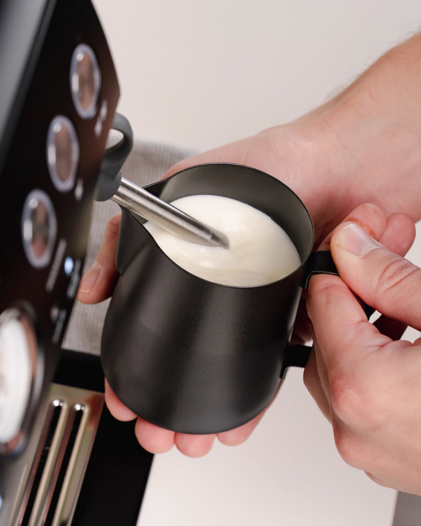 Door mijn ruime ervaring als barista heb ik (Hugo) geleerd dat een goed melkkannetje het verschil maakt.