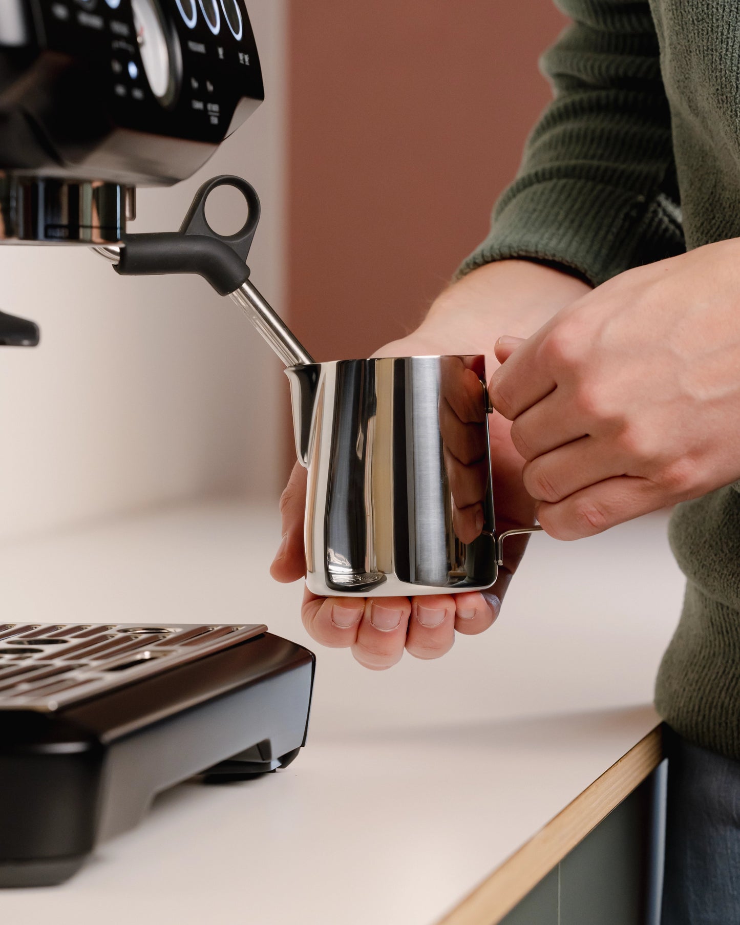Door mijn ruime ervaring als barista heb ik (Hugo) geleerd dat een goed melkkannetje het verschil maakt.