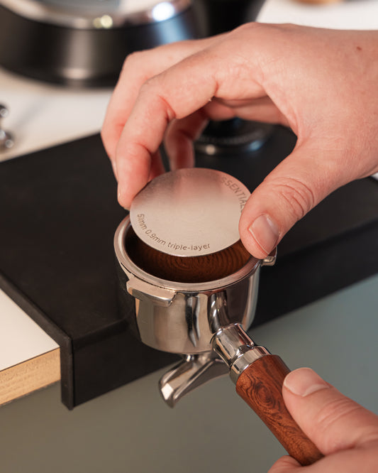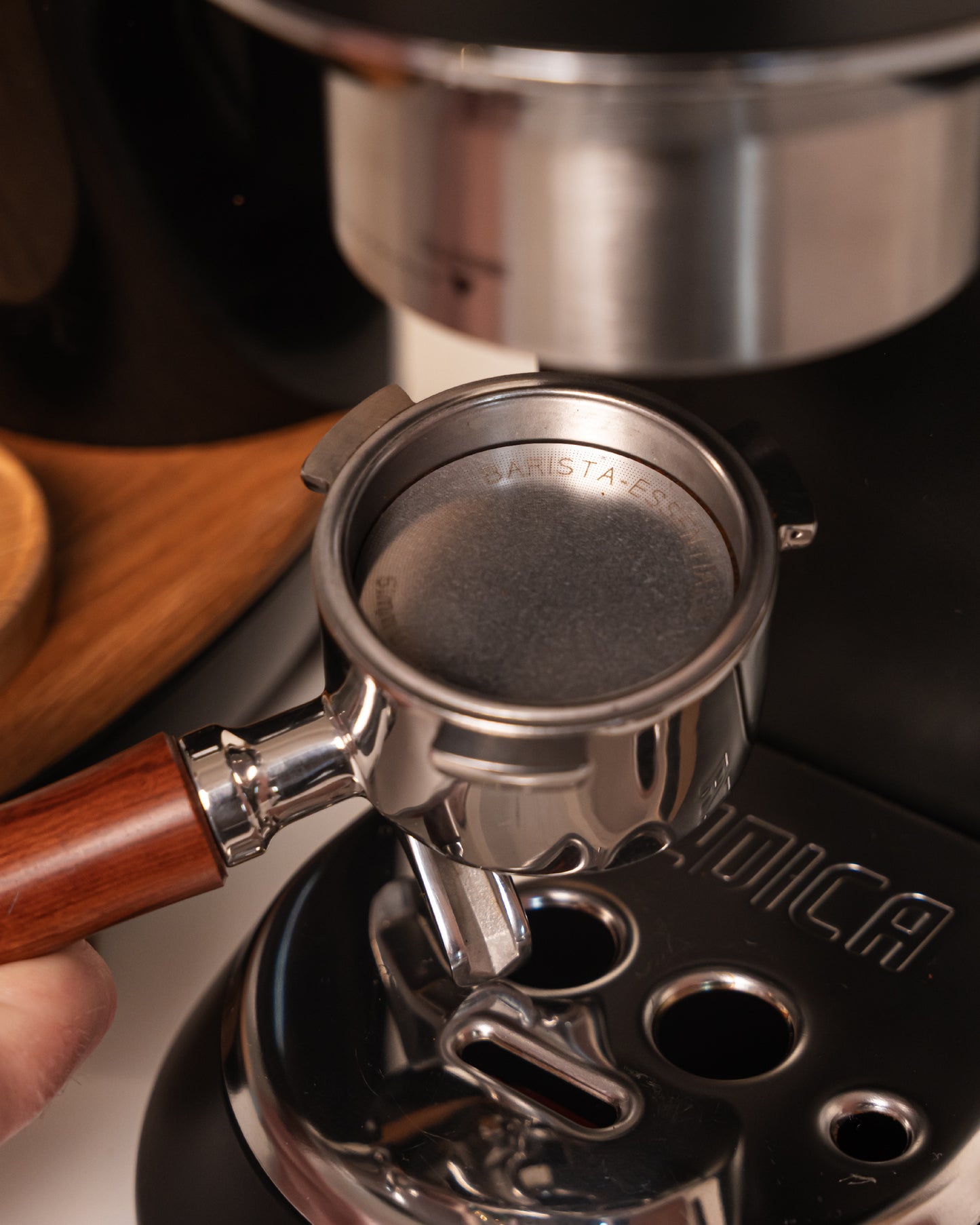 Let op: als je een puck screen gebruikt, zul je ongeveer 1 gram minder espressomaling hoeven gebruiken om je koffie goed in balans te houden.