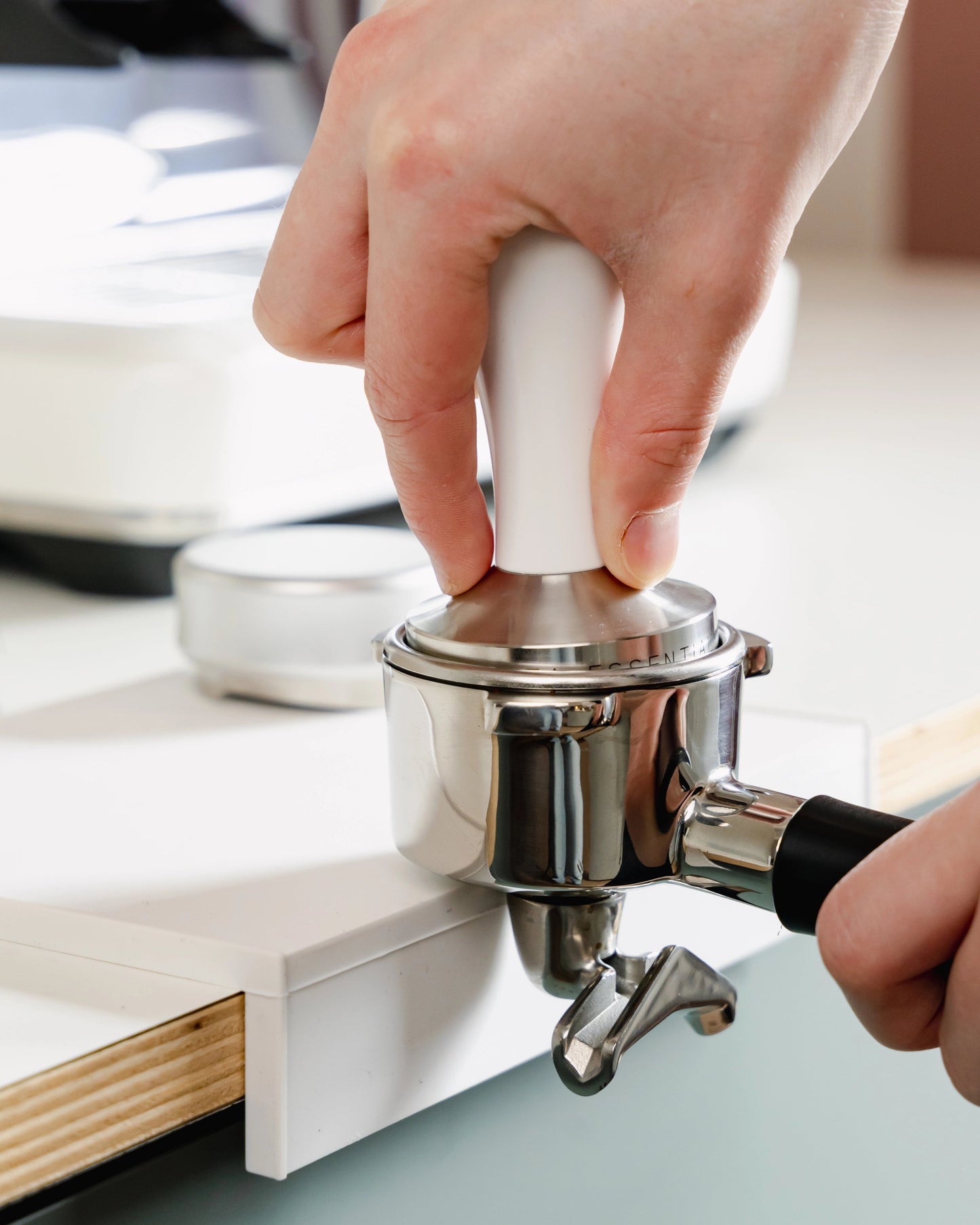 Vooral de plastic tamper zat me in de weg. Het lichte gewicht en oncomfortabele handvat maken het lastig om consistent recht te tampen.