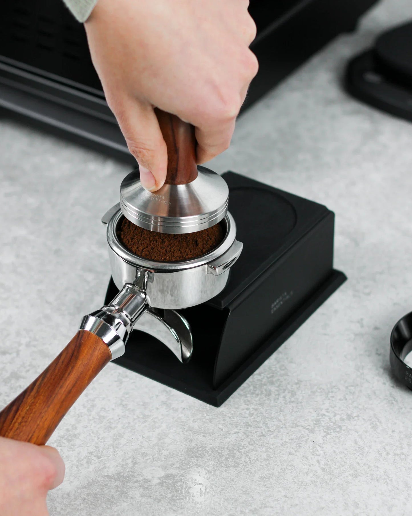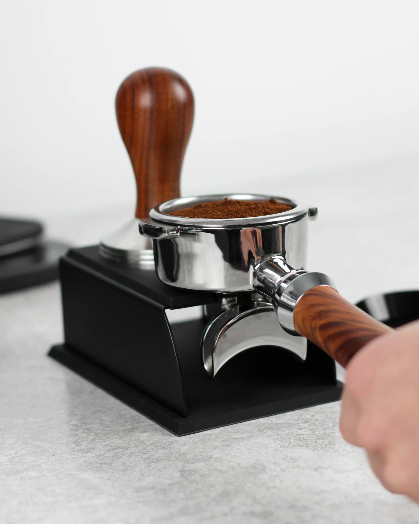 Gebruik je een portafilter van ons? Bij elke maat portafilter van ons kun je het tamper station gebruiken!
